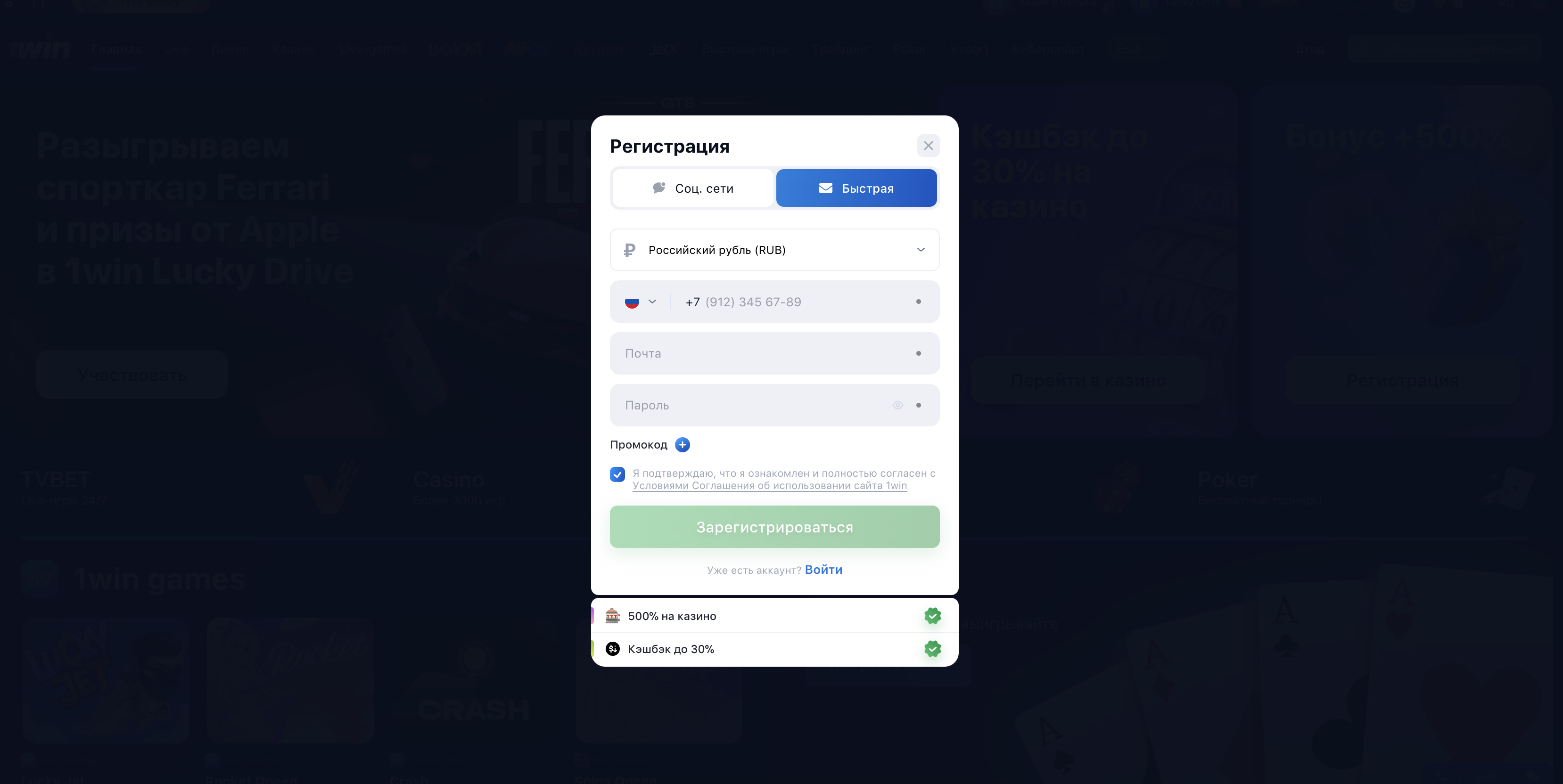 Если клиент хочет попасть на официальный сайт 1Win для игры на деньги быстрее, лучше выбрать регистрацию через соцсети:- Указать валюту баланса.